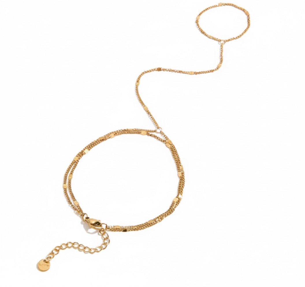 Hand chain en acero inoxidable, bañada en oro de 18k